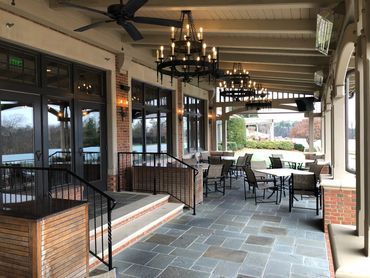 Looking to take advantage of Georgia’s many months of pleasant weather as well as a great view, Dunwoody Country Club decided to renovate and add on to their popular Mixed Grille and Bar. The additions consist of a covered dining porch off the main Grille dining room and a lower terrace featuring fire pits looking over the scenic 18th fairway and green. During significant interior renovations, the Adult Bar was relocated to the Mixed Grille / Dining room, and the Family Dining room took over the original Adult Bar location. The original Family Dining room transitioned to a Formal Dining area. This work represented the first phase of a long range master plan program that will also include an Aquatics and Youth facility, Wellness Center, expanded Tennis Facility, and expansion of parking capacity.